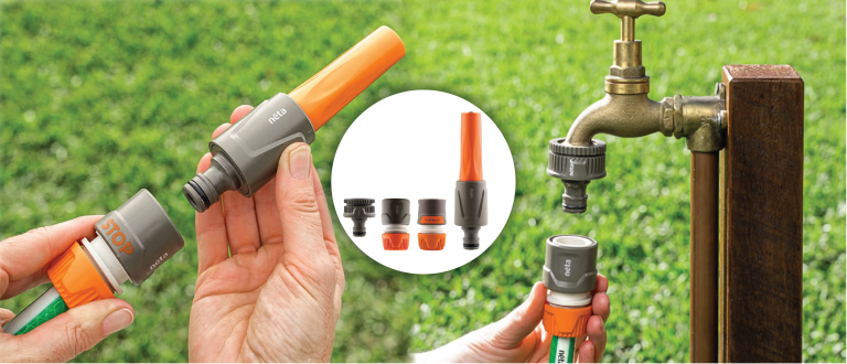 Fits all standard 12mm and 18mm garden hoses. Connects to 12mm click-on fittings.