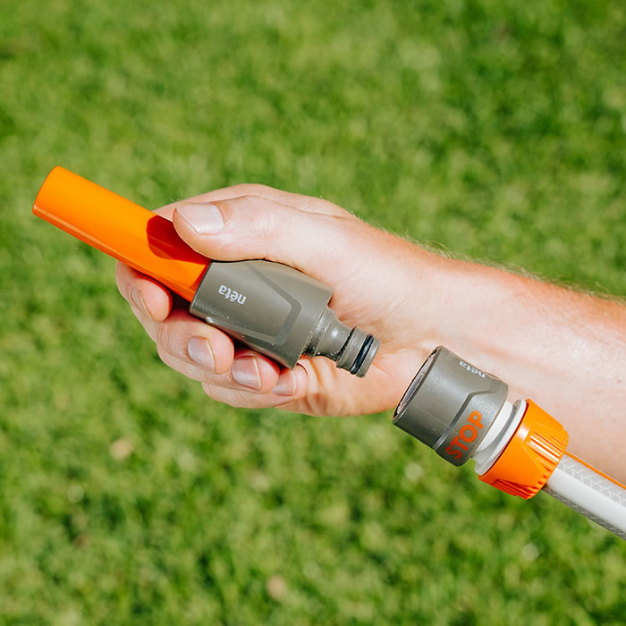 The 12mm Adjustable Click-On Nozzle features two spray patterns from spray to jet stream. Made from UV stabilized plastic, it is the ideal solution for watering garden beds and cleaning jobs.