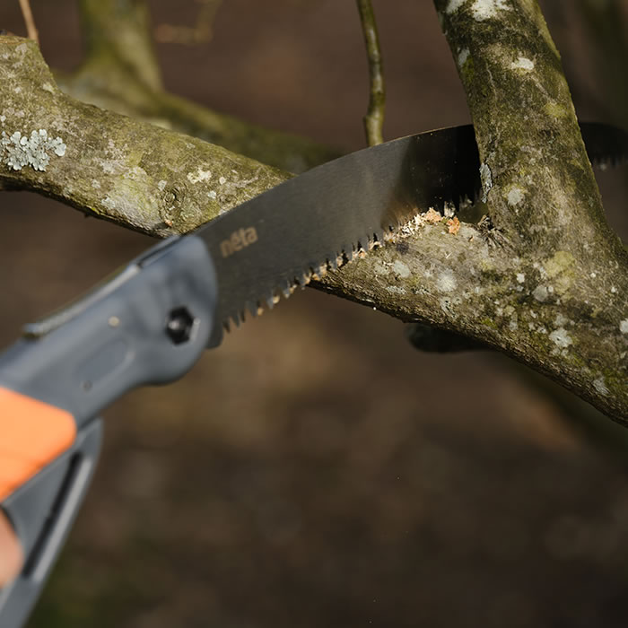 The Folding Hand Saw offers a robust, reliable and safe way to take care of delimbing small trees and cutting through fresh and dry wood. Experience smooth cuts on both the push and pull strokes thanks to the rust-resistant, carbon-steel triple- teeth blade. Ergonomically designed with a soft grip handle for improved performance, the blade folds back and is secured with a safety lock during storage.