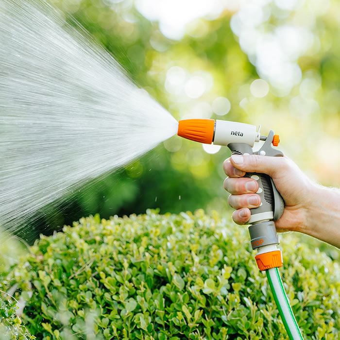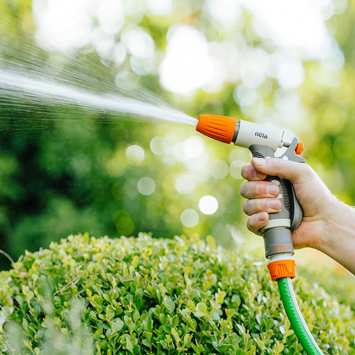 The 12mm Adjustable Click-On Jet Gun is the perfect solution for watering flower beds and performing general garden cleaning tasks. The wire trigger clip allows continuous watering and auto shut-off trigger control ensures water conservation.