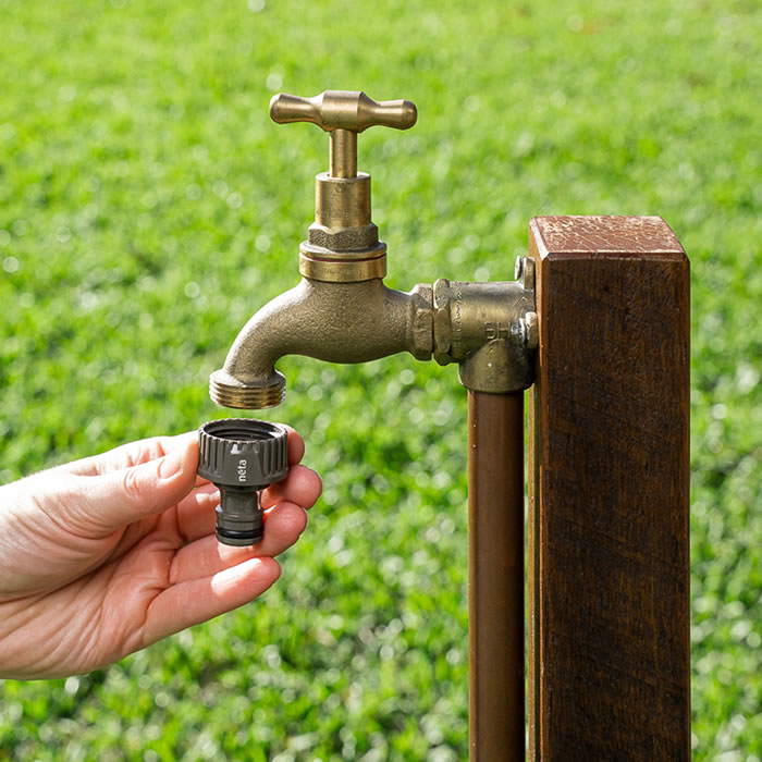 Created specifically for ¾” threaded taps. High-quality, durable construction for easy 1-click attachment of 12mm garden hose connectors.